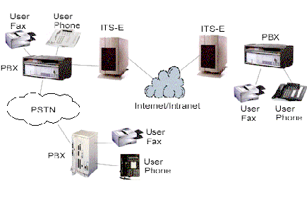 許多公司有多個(gè)辦公地點(diǎn),各地之間有著頻繁的通訊往來(lái),電話和傳真。典型地,通訊涉及到公用交換電話網(wǎng)(PSTN)或PBX間的私人連接路線。Internet電話服務(wù)器(ITS-E)提供了另一選擇。基本原理是一處用戶撥打的電話經(jīng)本地PBX路由到本地ITS-E,本地ITS-E通過(guò)IP網(wǎng)絡(luò)送到目的地ITS-E,目的地ITS-E再將電話送到目的地PBX上,最后送到目的地電話或傳真機(jī)上。