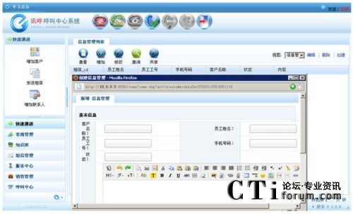 具有來(lái)電彈屏功能?蛻糍Y料可以進(jìn)行新增、修改、刪除、分配、查詢、查看、導(dǎo)入excel、視圖的創(chuàng)建、編輯、刪除等功能。 |