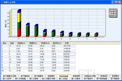 問題發(fā)現(xiàn):通過實(shí)時流量的統(tǒng)計分析,我們發(fā)現(xiàn)在信道6,AP數(shù)量10個,目前某AP接入終端數(shù)為16,對某些終端的服務(wù)質(zhì)量急劇降低,導(dǎo)致錯誤包過大。