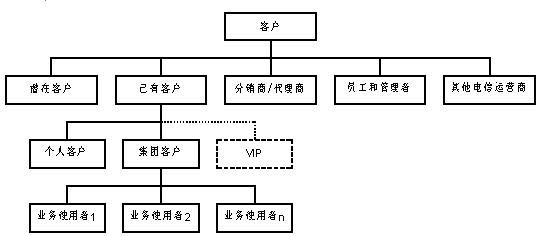 同時,客戶服務中心的服務對象進一步擴大,按照是否已經(jīng)使用該電信運營商提供的電信業(yè)務將客戶劃分為:潛在客戶、已有客戶。這里的潛在客戶并不針對某一具體的電信業(yè)務,而是針對電信運營商整體而言。其中,已有客戶又分為個人客戶和集團客戶。集團客戶內(nèi)部存在多個業(yè)務使用者,這些業(yè)務使用者本身也是客服系統(tǒng)的客戶。分銷/代理商代為發(fā)展電信運營商的客戶,同時他們也可以單獨作為一種特殊客戶享有客服系統(tǒng)提供的服務。在個人客戶和集團客戶中,均會有一部分成為特殊的VIP。此外,對客服系統(tǒng)來說,電信運營商的員工和管理者也是"客戶";同時,從網(wǎng)間互聯(lián)和網(wǎng)間結算的角度,其它運營商也應該按照客戶來對待。