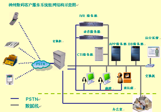 除了在線銷售方式外,神州數(shù)碼還采取了和各大銀行合作的方法,采用直復(fù)營銷的模式銷售其產(chǎn)品。隨著業(yè)務(wù)量的不斷增長,電話呼入訂單及咨詢、查詢、投訴等業(yè)務(wù)日趨漸多,為提高企業(yè)品牌形象,給客戶提供更好更快的優(yōu)質(zhì)服務(wù),神州數(shù)碼需要為各合作銀行提供個性化的接入,實現(xiàn)資源合理整合,提高整體工作效率。因此,迫切需要建立一套完整的呼叫中心客戶服務(wù)系統(tǒng),通過呼叫中心系統(tǒng)的建立,來實現(xiàn)電話、傳真、電子郵件、短信、語音留言等多渠道的接入,以進(jìn)行服務(wù)請求受理、業(yè)務(wù)訂單處理,達(dá)到方便快捷為客戶服務(wù)的目的。神州數(shù)碼于選擇了HOLLYCRM(合力金橋軟件)公司為其建設(shè)了呼叫中心,采用的是HollyC6