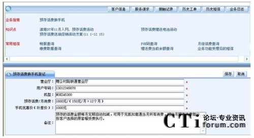 要實(shí)現(xiàn)此目的,IT支撐系統(tǒng)將高技能座席的處理能力“推送”給普通座席。第一章我們論述了IT支撐系統(tǒng)可以以客戶應(yīng)用場景為核心,通過分析流程分析客戶訴求找到客戶真正的需求。可以將這一思路推演下去,針對客戶的某個具體需求,呼叫中心制定統(tǒng)一的解決方案。我們以下面的“預(yù)存話費(fèi)換手機(jī)”為案例。通過先期溝通,座席已經(jīng)知曉這是客戶的真正訴求,只需要選擇好“預(yù)存話費(fèi)換手機(jī)”的業(yè)務(wù)類型,IT支撐系統(tǒng)會顯示出集成在一個頁面中的全套解決方案:處理此訴求可能用到知識庫中的三個知識點(diǎn);需要查詢的客戶信息,經(jīng)常給客戶發(fā)送的短信內(nèi)容;處理此訴求可能執(zhí)行的登記任務(wù),……