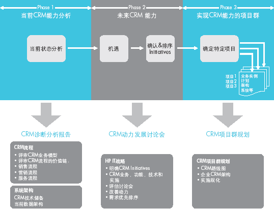 本階段,HP將指導(dǎo)客戶進(jìn)行未來(lái)CRM能力的開(kāi)發(fā),具體操作由HP的CRM專(zhuān)家通過(guò)一系列的workshop來(lái)完成。