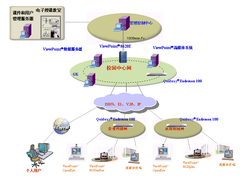 遠(yuǎn)程教學(xué)視訊系統(tǒng)組網(wǎng)方案(點(diǎn)擊放大)