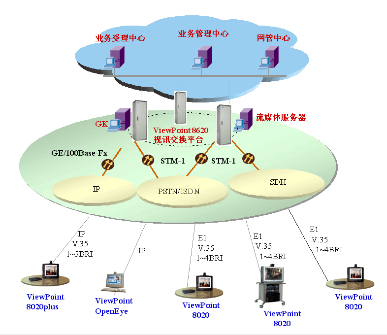 對于專網(wǎng)或非面向運(yùn)行的視訊網(wǎng)絡(luò)建設(shè),“視點(diǎn)通”ViewPoint®8000綜合視訊系統(tǒng)可以提供寬窄帶一體化的視訊交換平臺,提供各種線路接口方式,可充分利用專網(wǎng)和企業(yè)的現(xiàn)有網(wǎng)絡(luò),同時考慮網(wǎng)絡(luò)的發(fā)展需要,支持?jǐn)U展其它接口,保護(hù)用戶投資。