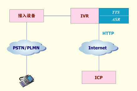 使用VXML語言編寫流程腳本或網(wǎng)頁,該腳本或網(wǎng)頁的內(nèi)容與固網(wǎng)短信終端上的菜單相對(duì)應(yīng),普通用戶可通過語音方式瀏覽該菜單。當(dāng)用戶選擇信息點(diǎn)播后,VoiceIE系統(tǒng)模擬普通固網(wǎng)短信終端向ICP發(fā)送請(qǐng)求,并接收ICP發(fā)來的文字信息,然后通過TTS技術(shù)向用戶播放文字信息。當(dāng)然,固網(wǎng)短信終端也可通過菜單瀏覽方式使用這些采用VXML語言編寫的業(yè)務(wù),采用VXML語言編寫網(wǎng)頁的工作可由ICP來完成。