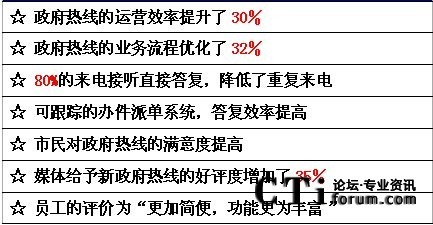 在我們的采訪中,深圳市政府認(rèn)為,建設(shè)法治政府、廉潔政府、效率政府、有限政府、陽(yáng)光政府和責(zé)任政府,前提是政府必須完成轉(zhuǎn)型。政府行政體制改革的最終目標(biāo)是要達(dá)到行政權(quán)力規(guī)范,服務(wù)型的一個(gè)政府。因而,為市民提供專(zhuān)業(yè)權(quán)威和有效的政府熱線服務(wù)成為題中之意。通過(guò)深圳市12345政府熱線的成功應(yīng)用,我們可以體會(huì)到呼叫中心應(yīng)用于政府及公用事業(yè)部門(mén)后,受益的不僅是千百萬(wàn)公眾,更重要的是加速了在社會(huì)急劇變革時(shí)代政府職能的現(xiàn)代化轉(zhuǎn)型。