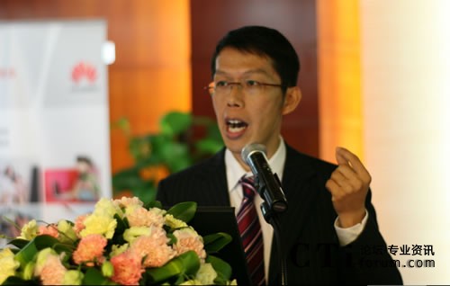 圖:華為軟件UC產(chǎn)品總監(jiān)許國華做“攜手邁入全業(yè)務(wù)融合時代,助力企業(yè)騰飛”的主題演講
