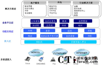 Smart CTI中間件是華為公司面向金融、外包、政府、緊急救援、能源等行業(yè)而推出的聯(lián)絡(luò)中心平臺。Smart CTI結(jié)合了CTI、Web和視頻技術(shù),提供多媒體接入和統(tǒng)一路由功能,讓客戶可以輕松快捷地構(gòu)建一個(gè)整合語音、視頻、傳真、短信、Web等能力的多媒體接觸中心。Smart CTI采用電信級的系統(tǒng)設(shè)計(jì),具有高可靠性和強(qiáng)大的處理能力,能夠支持多種綜合業(yè)務(wù)的受理,包括投訴、建議、咨詢、信息查詢、自動(dòng)和人工等業(yè)務(wù)。為了能夠更好地支撐聯(lián)絡(luò)中心運(yùn)營維護(hù),還提供了分析型報(bào)表、知識庫、工作流、模擬開發(fā)環(huán)境、可視化IVR流程開發(fā)平臺等一系列輔助精細(xì)化運(yùn)營軟件,幫助客戶實(shí)現(xiàn)業(yè)務(wù)快速上線、降低運(yùn)營維護(hù)成本。Smart CTI采用了獨(dú)立于各種接入媒體的設(shè)計(jì)結(jié)構(gòu),具有良好的開放性和可擴(kuò)展性。采用業(yè)務(wù)和交換分離的設(shè)計(jì)思想,業(yè)務(wù)實(shí)現(xiàn)層及業(yè)務(wù)支撐層從傳統(tǒng)的網(wǎng)絡(luò)中分離出來,使業(yè)務(wù)實(shí)現(xiàn)層也具有良好的開放性和可擴(kuò)展性。Smart CTI包含了媒體接入、功能支撐、服務(wù)支撐等模塊,是華為IPCC系統(tǒng)的核心控制服務(wù)器。