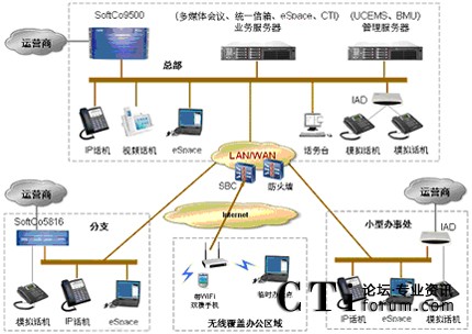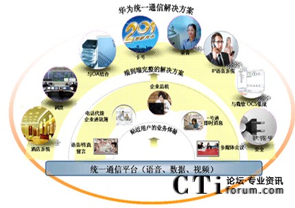 華為企業(yè)統(tǒng)一通信解決方案把語(yǔ)音、數(shù)據(jù)、視頻融合在統(tǒng)一的平臺(tái)上,基于該平臺(tái)可以方便實(shí)現(xiàn)IP語(yǔ)音系統(tǒng)、語(yǔ)音/數(shù)據(jù)會(huì)議系統(tǒng)、統(tǒng)一消息、話(huà)務(wù)臺(tái)、無(wú)線(xiàn)WIFI、安全、自助管理等多業(yè)務(wù)多系統(tǒng)的融合和協(xié)作。