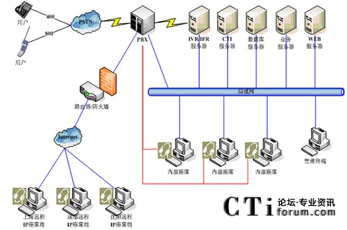 呼叫中心是一種基于CTI技術(shù)、充分利用通信網(wǎng)和計算機(jī)網(wǎng)的多項功能集成,并與企業(yè)連為一體的一個完整的綜合信息服務(wù)系統(tǒng),利用現(xiàn)有的各種先進(jìn)的通信手段,效地為客戶提供高質(zhì)量、高效率、全方位的服務(wù)。表面上看,呼叫中心是企業(yè)在最外層加上了一個服務(wù)層。實(shí)際上,它不僅對企業(yè)的外部用戶具有服務(wù)功能,同時也為企業(yè)內(nèi)部的管理、服務(wù)、調(diào)度、增值起到非常重要的協(xié)調(diào)作用。