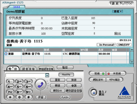 圖:AltiGen電話進(jìn)線后的主畫(huà)面,即有轉(zhuǎn)接、多方會(huì)議、保留等功能鍵,達(dá)到全方位通訊。