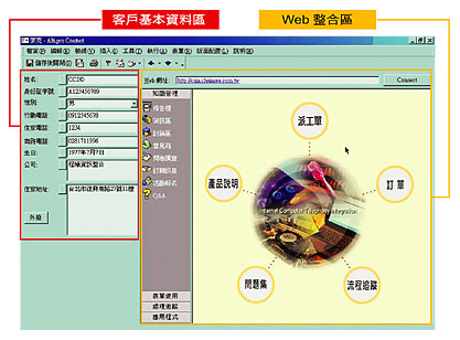 AltiGen可整合Web機(jī)制,Web為全世界Internet的標(biāo)準(zhǔn)介面,更是整合全球資源達(dá)無(wú)遠(yuǎn)弗屆境界的功臣,同時(shí)企業(yè)主可在其上輕易開(kāi)發(fā)或整合其他程式,更可整合Web跑單 (Work Flow)、訂單等功能,使用者可一邊與客戶通話,一邊在電腦螢?zāi)簧舷掠唵位蚍峙晒ぷ,?jié)省人工跑單作業(yè)時(shí)間,提升作業(yè)效率,同時(shí)對(duì)于跑單狀況的追蹤管理皆可在統(tǒng)一介面獲得整合,任何更新的進(jìn)度都可第一時(shí)間掌握。