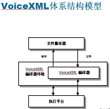 VoiceXML設計的工作原理:語音應用程序作為系列頁存儲在類似于網絡服務器的文件服務器上。從實現平臺接收到輸入呼叫時,VoiceXML編譯程序會向文件服務器發(fā)出一個特定URL請求,就像用戶瀏覽網絡時輸入網站地址一樣。文件服務器可以與編譯程序直接相連,也可以設置在外部,通過本地網或互聯網的IP協議訪問。他們可以保持應用程序的服務邏輯,可以提供數據庫查找與其他系統操作功能。
