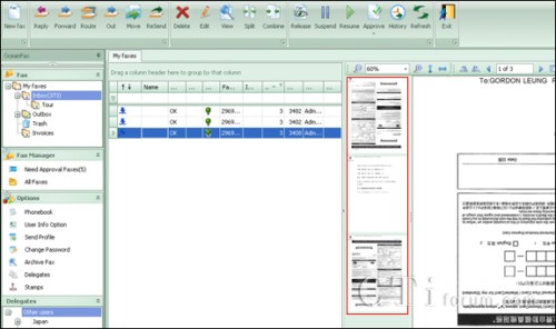 - The new version supports to save, edit, forward, route, sign, stamp, split and combine faxes;