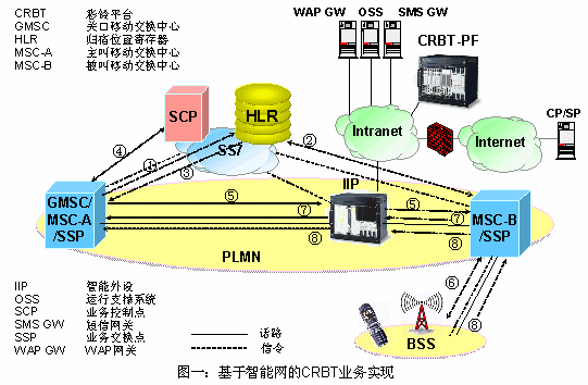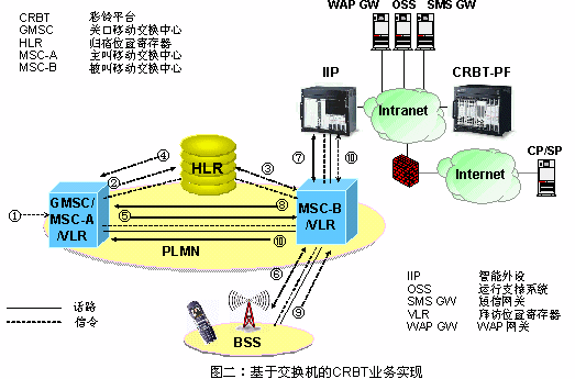 智能網(wǎng)方案對現(xiàn)有的網(wǎng)絡(luò)改動較小,可以快速開展彩鈴業(yè)務(wù)。但是,在現(xiàn)有的智能網(wǎng)網(wǎng)絡(luò)條件下,該方案會造成話路迂回,占用過多的中繼資源;而且整個呼叫過程中都要占用CRBT-IP,容易造成話務(wù)負(fù)載過大,限制了CRBT業(yè)務(wù)的用戶數(shù)量。