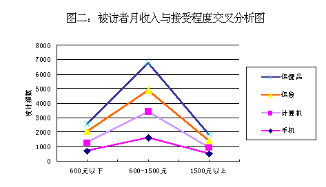調(diào) 查 表 明 : 收 入 在 600 元 到 1500 元 之 間 的 階 層 對(duì) 電 話 購 物 的 接 受 程 度 最 高 ; 而 20 歲 到 30 歲 這 個(gè) 年 齡 段 的 人 對(duì) 電 話 購 物 的 接 受 程 度 最 高 。