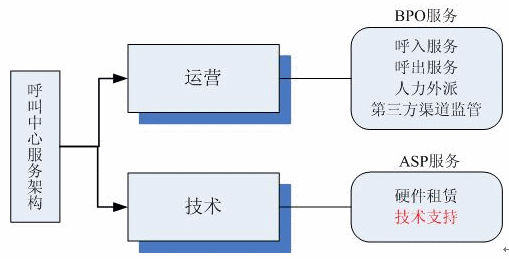 如上圖所示,運營和技術(shù)是呼叫中心最核心的兩大板塊。BPO(Business Processing Outsouring) 服務(wù),就是我們所說的商業(yè)流程外包,對于呼叫中心市場來說,已經(jīng)發(fā)展得相對成熟,市場上各大外包呼叫中心都可以為企業(yè)提供全面的BPO外包服務(wù),僅限于提供服務(wù)的能力和提供服務(wù)質(zhì)量不同。BPO服務(wù)幫助企業(yè)的項目管理人員節(jié)約管理時間、節(jié)約成本開銷、節(jié)約項目開銷;而ASP服務(wù)又能為企業(yè)帶來什么呢?從技術(shù)層面上講,ASP服務(wù)內(nèi)容包含了硬件和軟件兩大塊,但是人們往往忽視了ASP服務(wù)在軟件技術(shù)支持方面的應(yīng)用。如果說BPO服務(wù)解放了企業(yè)的項目管理人員,那么ASP服務(wù)的技術(shù)支持則幫助企業(yè)的技術(shù)人員從繁瑣的技術(shù)支持中解放出來。