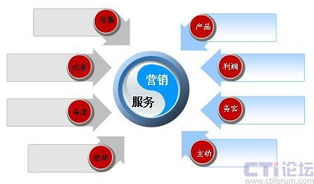 首先看一下服務(wù)營(yíng)銷的理念,有必要來(lái)溫故一下。在傳統(tǒng)的制造業(yè)中,即在工業(yè)經(jīng)濟(jì)的模式下,服務(wù)和營(yíng)銷是截然分割的,一般大家都認(rèn)為,營(yíng)銷在前,服務(wù)在后。服務(wù)有幾大特性,比如在購(gòu)買了產(chǎn)品后才會(huì)有相關(guān)的服務(wù),服務(wù)是無(wú)形的商品,企業(yè)建立的是售后服務(wù)體系。另外,大家都認(rèn)為服務(wù)沒(méi)有辦法進(jìn)行標(biāo)準(zhǔn)化,從這個(gè)角度說(shuō),大家一看到服務(wù),就會(huì)聯(lián)想:客服、成本、務(wù)虛、被動(dòng)等詞匯。服務(wù)體現(xiàn)的是一種理念,所以大家認(rèn)為比較虛。說(shuō)到服務(wù)是被動(dòng)的,實(shí)際是與營(yíng)銷相比,營(yíng)銷是比較主動(dòng)的。拿呼叫中心來(lái)說(shuō),客服人員坐在座位上,等待著客戶打來(lái)電話,而不能對(duì)電話進(jìn)行預(yù)測(cè),下一個(gè)小時(shí)會(huì)有多少呼入電話產(chǎn)生、投訴的內(nèi)容會(huì)有哪些、咨詢業(yè)務(wù)量會(huì)有多大,這些誰(shuí)也不能進(jìn)行準(zhǔn)確預(yù)測(cè),所以說(shuō)服務(wù)相對(duì)比較的被動(dòng)。再說(shuō)營(yíng)銷,大家談營(yíng)銷時(shí),能想到的詞匯有:產(chǎn)品、利潤(rùn)、務(wù)實(shí)、主動(dòng)。因?yàn)闋I(yíng)銷是與產(chǎn)品掛鉤,營(yíng)銷又可以賺取利潤(rùn)。另外,之所以說(shuō)營(yíng)銷是務(wù)實(shí)的,因?yàn)闋I(yíng)銷是有指標(biāo)的,每個(gè)月要進(jìn)行考核。同樣如果從呼叫中心的角度談電銷,它是一種主動(dòng)式的外呼。