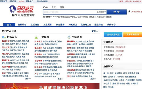馬可波羅網(wǎng)隸屬北京搜斗士信息技術(shù)有限公司,成立于2006年,是全球最大的精確采購搜索引擎。馬可波羅按照格式化標(biāo)準(zhǔn)研發(fā)的多維精準(zhǔn)搜索系統(tǒng),首創(chuàng)電子商務(wù)精確廣告營銷模式(B2B競價排名),僅用了不到5年時間,即在B2B電子商務(wù)精準(zhǔn)采購搜索領(lǐng)域做到行業(yè)第一。