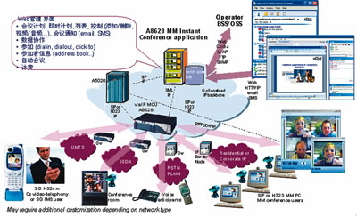 針對這個廣大企業(yè)面臨的難題,上海貝爾阿爾卡特推出了多媒體協(xié)同會議系統(tǒng),為電信運營商帶來了巨大的商機。多媒體協(xié)同會議系統(tǒng)(MultiMediaInstantConferencing,以下簡稱MMIC)能實現(xiàn)語音、數(shù)據(jù)和視頻的協(xié)同工作,使身處異地的人們可以在同一時間合作解決同一個問題。借助多樣化的接入手段,MMIC為用戶提供了集成語音、視頻、數(shù)據(jù)、即時消息、Presence等強大功能的多媒體會議業(yè)務。同時,它完全基于WEB瀏覽器的方式,實現(xiàn)了終端的無關(guān)性、位置的無關(guān)性,從而利用智能化的通信手段,為運營商、企業(yè)節(jié)省了大量投資。