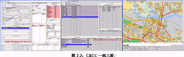 - 一機(jī)三屏:一屏CAD,另一屏為GIS,第三屏專用于資源調(diào)度。與雙屏配置相比,三屏配置的優(yōu)勢在與資源調(diào)度更加直接、快捷,同時(shí)更可以整合無線調(diào)度通訊資源。但是三屏配置需要較復(fù)雜的客戶化工作。