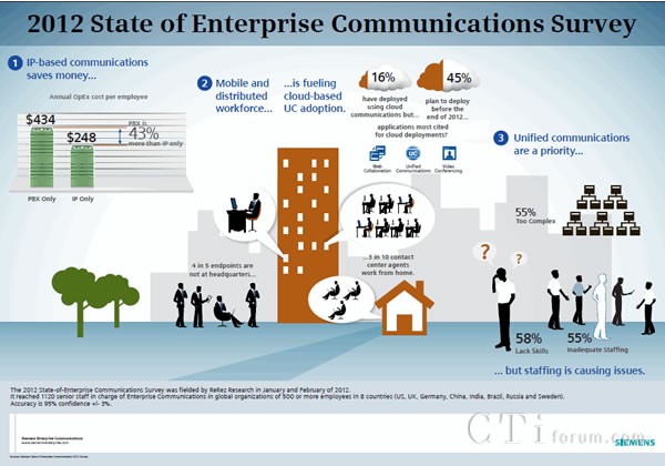 “此項研究的發(fā)現(xiàn)證實了我們從客戶那里得來的反饋:基于IP的統(tǒng)一通信不僅提高了終端用戶的生產(chǎn)效率,還節(jié)約了公司成本,”西門子企業(yè)通信北美區(qū)總裁兼全球市場總監(jiān)Chris Hummel說,“企業(yè)通信正處于從PBX到IP以及從客戶機(jī)房到云部署的過渡時期。西門子企業(yè)通信致力于為我們的客戶提供靈活開放的企業(yè)通信解決方案,以適應(yīng)其業(yè)務(wù)需要。這有助于降低IT技術(shù)的復(fù)雜性,更好地支持企業(yè)員工的移動性需求,并幫助企業(yè)完成這種轉(zhuǎn)變。”