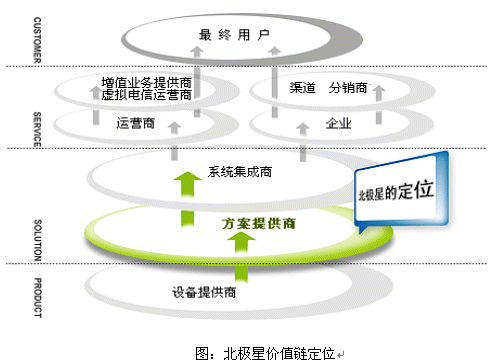 北極星軟件以技術(shù)領(lǐng)先見長(zhǎng)。北極星軟件的iAfx ( Intelligent Application Frameworks ) 是一個(gè)融合語音、圖像、消息、多媒體數(shù)據(jù)的分布式通信應(yīng)用架構(gòu),為業(yè)務(wù)處理和應(yīng)用開發(fā)提供了全新的概念和良好的環(huán)境。iAfx?體系既充分考慮了對(duì)現(xiàn)階段運(yùn)營(yíng)商網(wǎng)絡(luò)和基礎(chǔ)構(gòu)架的支持,又兼顧了網(wǎng)絡(luò)和通信技術(shù)向下一代發(fā)展的必然趨勢(shì)。 基于iAfx?架構(gòu),北極星軟件開發(fā)的系列VoIP增值業(yè)務(wù)解決方案既能適應(yīng)現(xiàn)有網(wǎng)絡(luò)環(huán)境,又能向下一代網(wǎng)絡(luò)(NGN)平滑過渡。