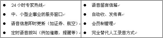 將以往的單位的人工熱線(xiàn)電話(huà)轉(zhuǎn)換為計(jì)算機(jī)24小時(shí)自動(dòng)熱線(xiàn)。有效解決服務(wù)態(tài)度、服務(wù)質(zhì)量等敏感問(wèn)題。咨詢(xún)來(lái)電只須象以往撥打熱線(xiàn)電話(huà),計(jì)算機(jī)中的語(yǔ)音卡就會(huì)自動(dòng)接通,完成95%以上的人工服務(wù)任務(wù),用戶(hù)就可以通過(guò)電話(huà)這種最簡(jiǎn)單、最易用的方式快速獲取信息。