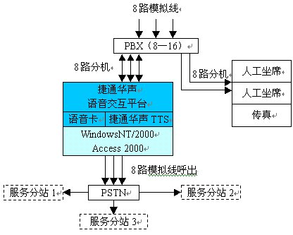 適用于中小型企事業(yè)單位的客戶(hù)服務(wù)系統(tǒng),或信息查詢(xún)系統(tǒng)。特點(diǎn)是線(xiàn)路資源主要用于交互系統(tǒng),可以最大限度的利用線(xiàn)路資源進(jìn)行服務(wù)或查詢(xún)工作。同時(shí)充分利用交換機(jī)進(jìn)行內(nèi)部線(xiàn)路交換,提高服務(wù)效率。