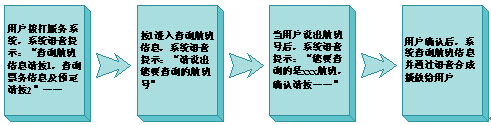 - 航班信息查詢是航空語音服務(wù)系統(tǒng)可加載的業(yè)務(wù)之一,還可以同時加載例如票務(wù)查詢與預(yù)定等業(yè)務(wù),在用戶通過語音預(yù)定后,可以選擇將票務(wù)信息通過短信或彩信發(fā)到手機上,從而實現(xiàn)電子訂票功能,減少了服務(wù)成本;
