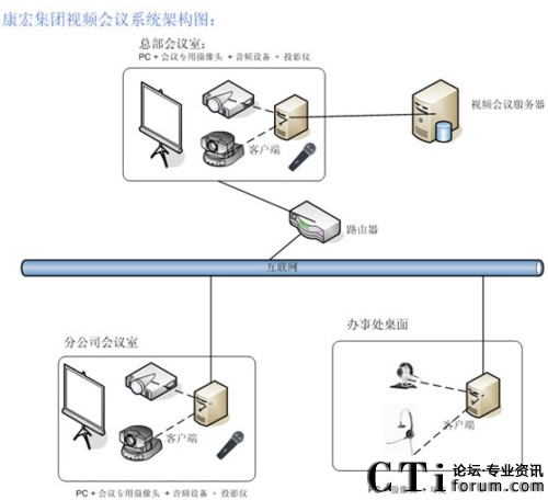 康宏集團總部擁有100M光纖接入,每個分公司擁有10M光纖接入,每個辦事處為1M或2M ADSL接入。V2 Conference視頻會議系統(tǒng)以康宏集團目前的網(wǎng)絡為基礎,部署和實施該多媒體會議系統(tǒng),實現(xiàn)一個可進行音頻、視頻和數(shù)據(jù)的多方位交互平臺。