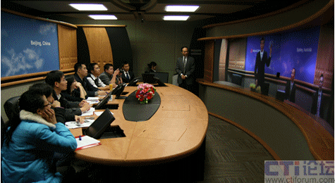 Australia”以外,畫面所呈現(xiàn)的場景與我們的會議室完全一樣。此時,在座的體驗(yàn)者都露出驚訝的表情,并開始互致問好。讓我意外的是:當(dāng)人們開始自我介紹時,大家的目光都齊刷刷的投向了發(fā)言者,而且就像坐在同一間會議室,根本不用刻意提高嗓門講話。
