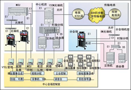 電路可靠。全網(wǎng)電路中沒有其它網(wǎng)絡(luò)設(shè)備,高院主會場由光端機(jī)直接使用E1接口與MCU連接,分會場由光調(diào)制解調(diào)器E1口直接與會議終端相接,電路非常簡捷。全程使用光纜傳輸,中間不用任何復(fù)用或轉(zhuǎn)換設(shè)備,不僅電路可靠而且對網(wǎng)絡(luò)故障判斷、維護(hù)顯得異常簡單。