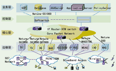 Softswitch體系結(jié)構(gòu)將下一代網(wǎng)絡(luò)共劃分為四層:邊緣接入層、核心傳送層、控制層和業(yè)務(wù)應(yīng)用層,各層之間采用明確的標(biāo)準(zhǔn)化接口(而不是各廠家自己所設(shè)計(jì)的專用接口)。Softswitch提供綜合接入能力,支持種類眾多的終端設(shè)備,可以完成與現(xiàn)有PSTN/ISDN、PLMN、IN和Internet網(wǎng)的互通,使用戶完全屏蔽網(wǎng)絡(luò)的變革。