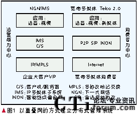 中國移動(dòng)看到了面對Teleco 2.0需求,IMS的局限性,開展移動(dòng)互聯(lián)網(wǎng)計(jì)劃WIISE的研究,并且發(fā)布了分布式業(yè)務(wù)網(wǎng)絡(luò)(DSN)白皮書[3]。平行于在可管理IP網(wǎng)上的IMS,開展在公共移動(dòng)互聯(lián)網(wǎng)上建立DSN(相當(dāng)于前述的INON)的研究。發(fā)展DSN重點(diǎn)在于提供分布式管理和支撐環(huán)境,應(yīng)對未來移動(dòng)互聯(lián)網(wǎng)和網(wǎng)絡(luò)新媒體的需求。這不僅順應(yīng)了發(fā)展趨勢,更搶占了先機(jī)。目前DSN的概念尚在發(fā)展演化中,但保持互聯(lián)網(wǎng)的開放性是非常重要的,DNS應(yīng)該能夠支持互聯(lián)網(wǎng)上的各種應(yīng)用,從今天的P2P流媒體,各種Web2.0應(yīng)用到未來的網(wǎng)絡(luò)新媒體、Web3.0語義網(wǎng)等。重點(diǎn)是鼓勵(lì)和支持互聯(lián)網(wǎng)上層出不窮的各種新應(yīng)用而不是自己去發(fā)展一些應(yīng)用。這樣就能夠形成一個(gè)健康的產(chǎn)業(yè)鏈。