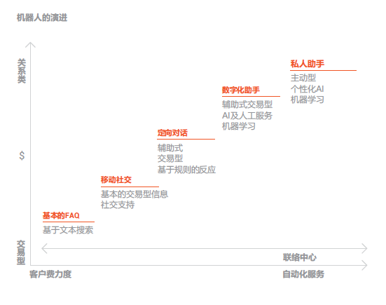 客戶服務(wù)智能化: 就是通過(guò)對(duì)服務(wù)流程的優(yōu)化或改造以支撐AI技術(shù)應(yīng)用最終達(dá)到提升人工效率和客戶體驗(yàn)的過(guò)程。在用戶層面包括:語(yǔ)音或文本聊天機(jī)器人、實(shí)體機(jī)器人、虛擬座席、智能IVR 、智能外呼等。在座席層面包括:智能知識(shí)庫(kù)、智能工單系統(tǒng)、智能營(yíng)銷輔助系統(tǒng)、流程機(jī)器人、座席學(xué)習(xí)系統(tǒng)、座席情緒感知系統(tǒng)等。在管理層面包括:智能質(zhì)檢系統(tǒng)、智監(jiān)控系統(tǒng)、智能 分析系統(tǒng)、智能排班系統(tǒng)等。