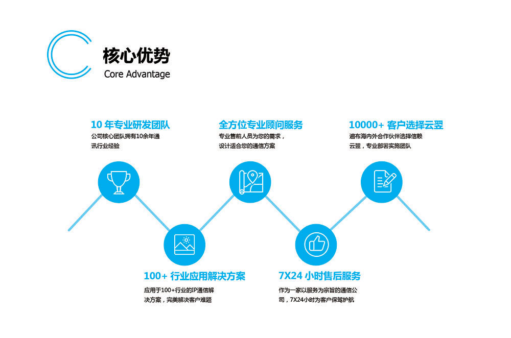 云翌通信一直秉承著"用最簡(jiǎn)單的方法,最踏實(shí)的態(tài)度,為用戶創(chuàng)造最大的價(jià)值"為發(fā)展理念,致力于成為國(guó)內(nèi)IP通信行業(yè)第一品牌,為客戶提供放心的通信產(chǎn)品及服務(wù)。