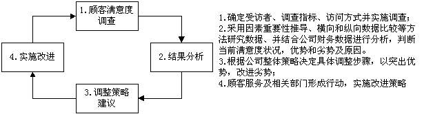 顧客滿意度調(diào)查和客戶投訴和建議處理系統(tǒng)、神秘顧客調(diào)查、流失客戶分析是當(dāng)前企業(yè)收集客戶意見的四種主要方法。其中,顧客滿意可以運用幾種方法衡量。它可以通過詢問直接衡量:“請按下面的量度說出你對某服務(wù)的滿意程度:很不滿意、不太滿意、一般、比較滿意、很滿意”(直接報告滿意程度)。還可以要求受訪者評價他們期望一個什么樣的產(chǎn)品屬性,以及他們實際得到的是什么(引申出來的不滿意)。另外一種方法是要求受訪者列出他們在產(chǎn)品上發(fā)現(xiàn)的任何問題和他們能建議的任何改進措施(問題分析)。最后,公司可以要求受訪者按產(chǎn)品各要素的重要性不同進行排列,并對組織在每個要素上的表現(xiàn)作出評價(重要性/績效等級排列)。最后一種方法可以幫助公司了解它是否在一些重要的要素方面表現(xiàn)不佳,或在一些相對不重要的要素方面過于投入。而且,研究顯示,在收集有關(guān)顧客滿意的信息時,詢問顧客再次購買和再次推薦的問題,也是十分有價值的,它們共同構(gòu)成了顧客滿意度調(diào)查指標。