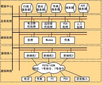 目前,各大證券公司的呼叫中心一般采用多址型,每個(gè)分中心的規(guī)模都不大。各個(gè)營(yíng)業(yè)部獨(dú)立運(yùn)營(yíng),并直接與證交所相連,證券公司內(nèi)部無(wú)統(tǒng)一的、大型的數(shù)據(jù)庫(kù)。