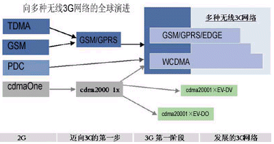 移動(dòng)多媒體服務(wù)需要網(wǎng)絡(luò)具有更高的速度和更大的容量。蘇敏芬詳細(xì)描述了網(wǎng)絡(luò)由2G向3G演進(jìn)的過(guò)程(如圖1)。據(jù)介紹,2G的技術(shù)基于多種標(biāo)準(zhǔn),包括TDMA、GSM、PDC和cdmaOne。其中,TDMA是美國(guó)采用最廣泛的2G技術(shù),但現(xiàn)在,美國(guó)的運(yùn)營(yíng)商已經(jīng)越來(lái)越多地開(kāi)始采用GSMc以及GPRS、EDGE等基于GSM的技術(shù);GSM存在于全球70%的運(yùn)營(yíng)商網(wǎng)絡(luò),這種全球化技術(shù)不僅能夠給最終用戶提供服務(wù)、漫游以及通信質(zhì)量方面的很多好處,它還可以節(jié)省運(yùn)營(yíng)商的投資,在從GSM向WCDMA演進(jìn)的過(guò)程中,也會(huì)為運(yùn)營(yíng)商帶來(lái)諸多裨益。PDC是在日本被廣泛采用的一種技術(shù)標(biāo)準(zhǔn),但現(xiàn)在,WCDMA技術(shù)也正在逐漸被日本運(yùn)營(yíng)商采用。cdmaOne(即IS-95)在韓國(guó)得到了比較多的應(yīng)用,韓國(guó)的運(yùn)營(yíng)商面臨兩條發(fā)展道路,即從cdmaOne向WCDMA發(fā)展或向CDMA2000發(fā)展。中國(guó)主要采用GSM技術(shù),但也有小部分網(wǎng)絡(luò)采用了cdmaOne技術(shù)。