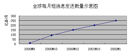 。。2001年全球的短消息服務(wù)業(yè)得到了迅猛的發(fā)展,全球共發(fā)送短消息2000億條。在中國(guó)短消息服務(wù)市場(chǎng)中,中國(guó)移動(dòng)在2001年發(fā)送短消息159億條,中國(guó)聯(lián)通發(fā)送短消息30億條。隨著中國(guó)移動(dòng)和中國(guó)聯(lián)通之間的互聯(lián)互通,中國(guó)短消息市場(chǎng)在2002年將達(dá)到300億條。并且中國(guó)電信和中國(guó)網(wǎng)通也加入到此市場(chǎng)中,中國(guó)固話(huà)短消息也將在此市場(chǎng)中占有一席之地。 中國(guó)的移動(dòng)用戶(hù)在2002年4月已經(jīng)到了1.6億戶(hù),并且還在以500萬(wàn)戶(hù)/月的速度發(fā)展,估計(jì)到2005年中國(guó)的移動(dòng)用戶(hù)將達(dá)到4.5億戶(hù),中國(guó)手機(jī)用戶(hù)在35歲以下的占80%左右,他們是使用短消息的主體人群,因此中國(guó)移動(dòng)短消息具有非常大的發(fā)展?jié)摿Α?/p>