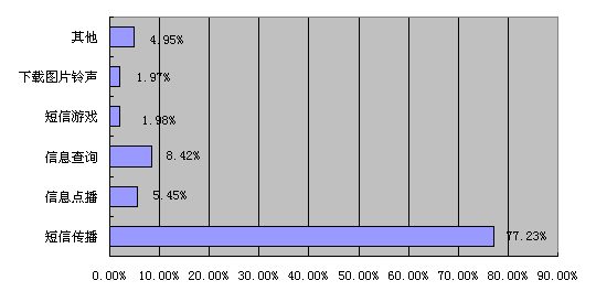 手機(jī)用戶(hù)平均每天使用一次以上短消息服務(wù)所占的比例