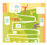俗話說,多多益善。但是當(dāng)談到多個(gè)網(wǎng)絡(luò)的管理或費(fèi)用承擔(dān)等問題時(shí),恐怕大多數(shù)人都會(huì)同意一個(gè)網(wǎng)絡(luò)要比兩個(gè)或者三個(gè)更為經(jīng)濟(jì)有效。這其實(shí)是很容易理解的----當(dāng)數(shù)據(jù),語音和視頻能夠利用同一個(gè)網(wǎng)絡(luò)進(jìn)行傳輸?shù)脑,還有什么必要在每個(gè)桌子拖上一大堆電線,讓公司維護(hù)三五套網(wǎng)絡(luò)硬件,還要養(yǎng)活好幾組技術(shù)支持隊(duì)伍呢?更何況一個(gè)綜合性的網(wǎng)絡(luò)還能集中精力為每個(gè)用戶提供更好的服務(wù)?于是,IP電話應(yīng)運(yùn)而生,這種技術(shù)讓很多公司有機(jī)會(huì)利用現(xiàn)有的網(wǎng)絡(luò)框架贏得更大的利益。