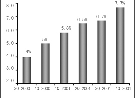 在美國的泡沫經(jīng)濟破滅、市場極度低迷的時候,歐洲又傳來第三代無線通信技術(shù)——WCDMA因產(chǎn)品、市場等諸多原因全面推遲的消息,這對本來就處于蕭條狀態(tài)的全球通信業(yè)來說,無疑雪上加霜。業(yè)內(nèi)人士在不斷地尋找和探討,究竟什么樣的需求才是目前市場的驅(qū)動力?究竟什么樣的技術(shù)才能真正體現(xiàn)市場價值呢?