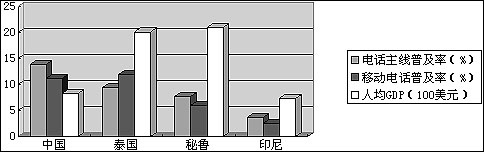 圖2,世界重要地區(qū)的電信收入(2000 年度)與GDP(2001 年度)的比例