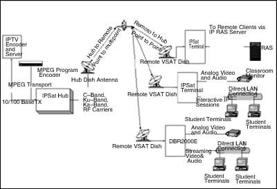 中國衛(wèi)通的“衛(wèi)星寬帶視頻會議系統(tǒng)”是一個典型的IPSat系統(tǒng),由一個發(fā)送高速上行廣播的主站和使用IPSat終端的多個遠端站構成。