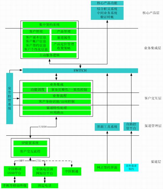 手機(jī)銀行作為一個(gè)實(shí)時(shí)在線、交互性強(qiáng)的交易渠道,首先它是基于銀行帳戶的交易,而不是基于手機(jī)話費(fèi)的交易,因此需要客戶將手機(jī)和其銀行帳戶對應(yīng)綁定;其次,一方面銀行將有大量金融產(chǎn)品通過該渠道發(fā)布,需要將銀行的金融產(chǎn)品解釋成手機(jī)銀行渠道的業(yè)務(wù)流程;另一方面,由于其貼近客戶的特定,而且由于手機(jī)這種移動終端的界面表達(dá)能力的限制,不可能把所有的功能一次性全部展示在客戶面前,需要為不同客戶提供不同的定制服務(wù)。 最后,手機(jī)銀行系統(tǒng)需要支持多通信服務(wù)提供商和多接入技術(shù)。