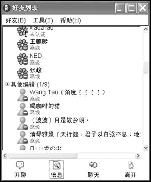 注意:在默認(rèn)設(shè)置下Gaim是不顯示離線好友的,當(dāng)然,你也可以在“好友”菜單中選中“顯示離線好友”項。