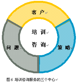 當然,提升效果對于培訓咨詢服務提供商來說是一個很高的要求,不但要有專業(yè)運營經(jīng)驗和精深的行業(yè)知識,還需要從"以問題為中心"的思路過渡到關注"問題、客戶、策略"三個中心(如圖6 所示)。